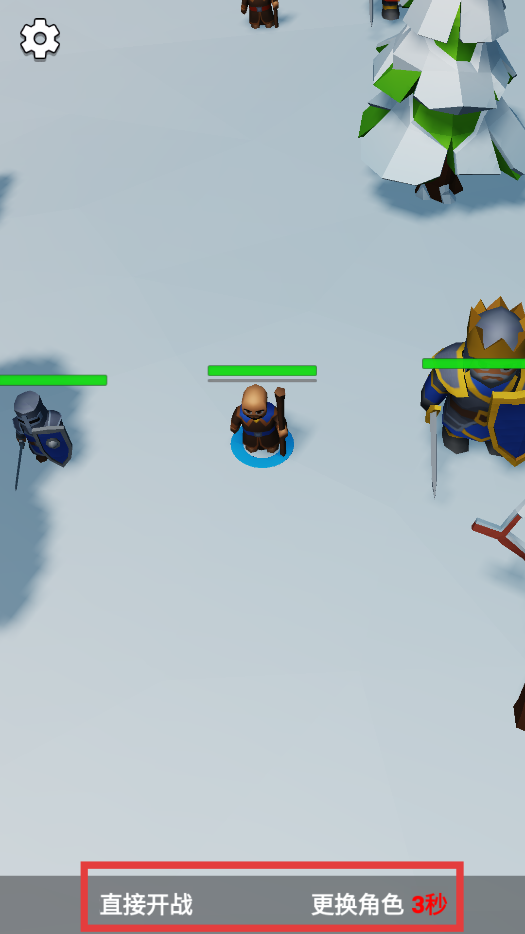 2、匹配到對手后進入角色選擇界面,可選擇心儀的角色出戰,若對角色不滿意點擊更換角色進行調整,確定角色后點擊直接開戰,將角色部署到戰斗場景中。