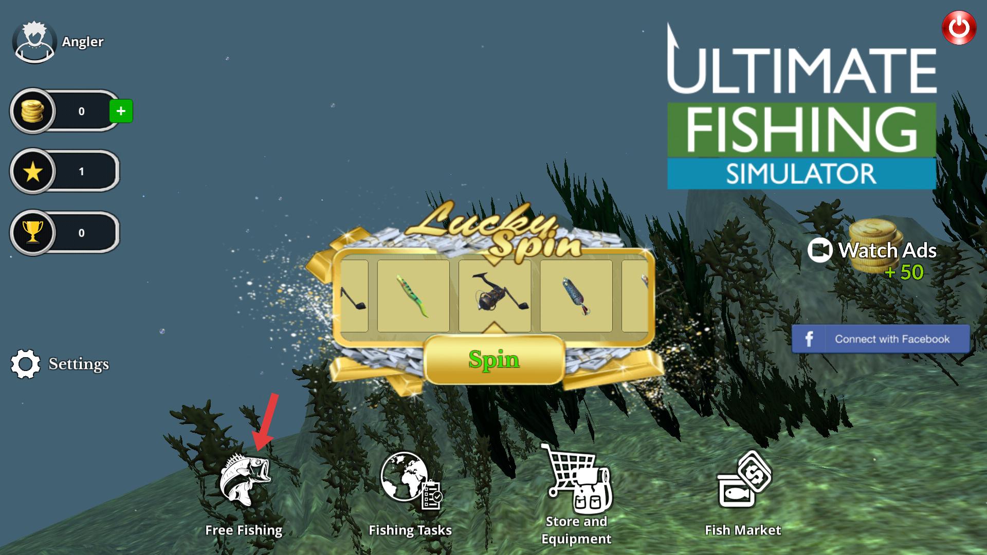 1、進入游戲界面,點擊下方Free Fishing圖標,即可開啟自由釣魚模式,無需消耗金幣,能直接體驗釣魚樂趣,開啟后可選擇釣點開始垂釣。