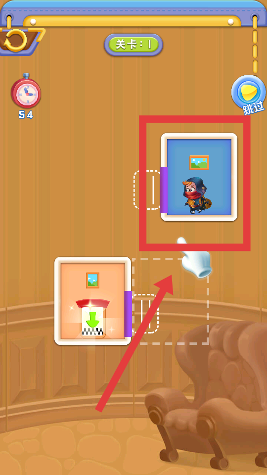 3、玩家需要通過移動方塊,讓角色抵達出口,在規定時間左上角時鐘內完成則逃脫成功,進入結算。