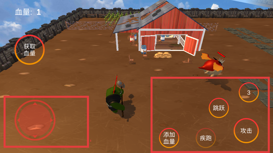 2、玩家通過屏幕左側的虛擬搖桿來移動綠色獸人角色,靈活調整角色在場景中的位置,躲避敵人攻擊或靠近敵人。