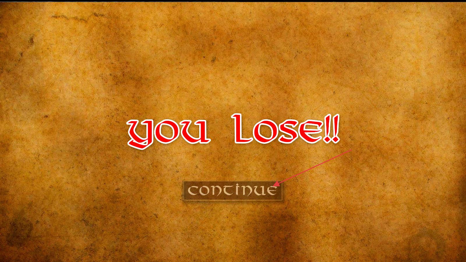 4、若戰斗失敗,會出現失敗提示界面,此時玩家點擊繼續按鈕,可繼續游戲,重新開啟戰斗。