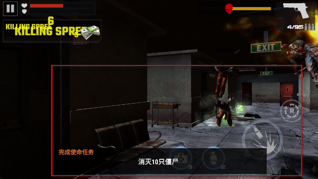 4、游戲有任務要求,比如需要消滅一定數量的僵尸,完成任務后會有獎勵,在場景中持續戰斗,朝著完成任務的目標推進。