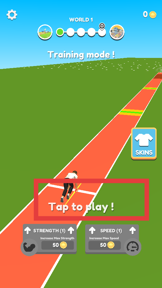 1、玩家下載游戲之后,在游戲初始界面,看到Tap to play提示后點擊屏幕,即可開始游戲,讓角色在跑道上準備起跑。