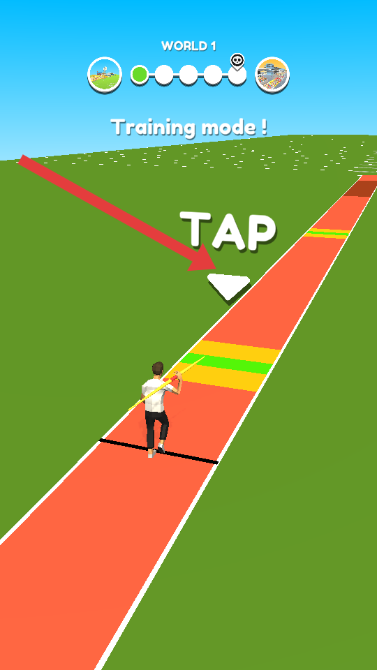 2、游戲過程中出現TAP提示時點擊屏幕,操控角色進行動作如投擲標槍等,推動角色在跑道上前進或完成特定運動動作。