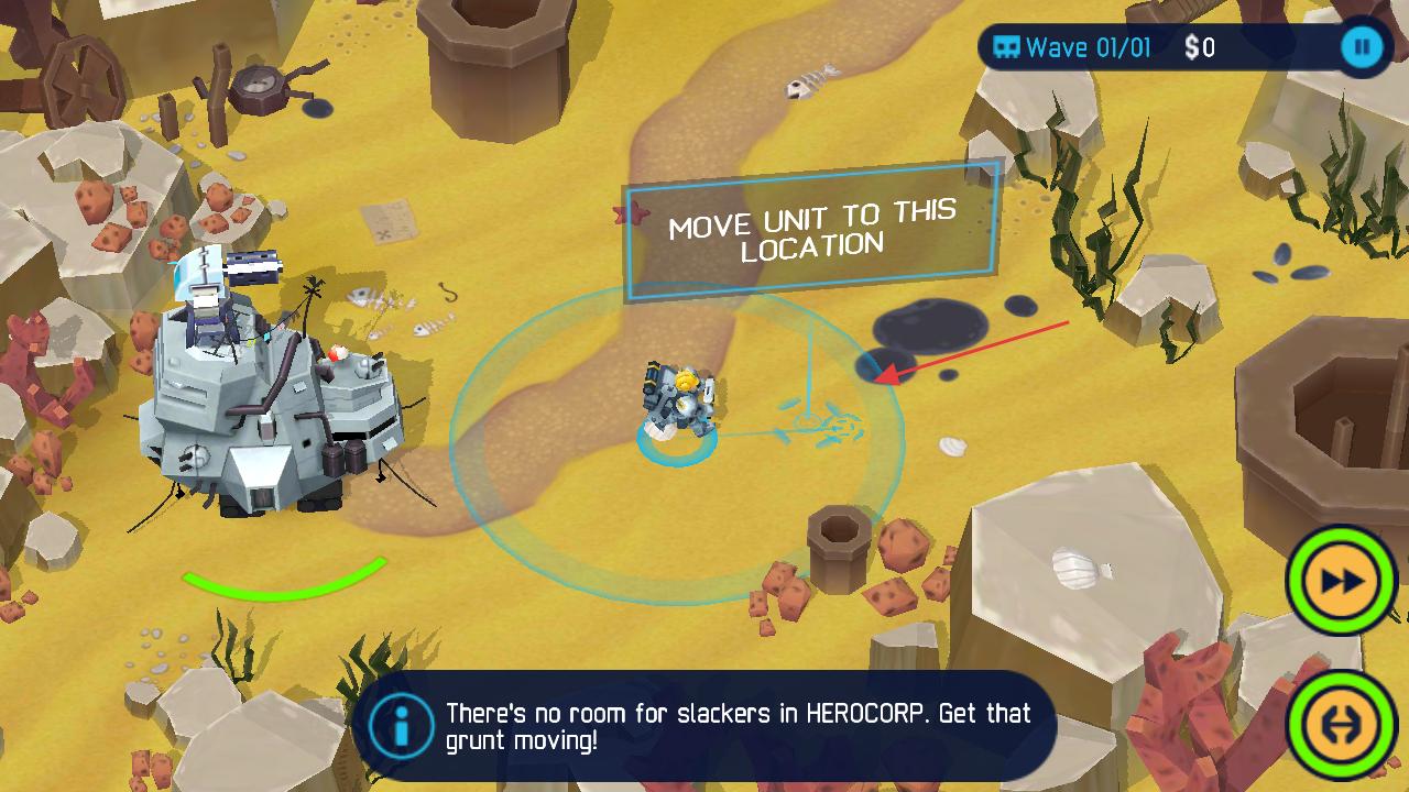 4、選中單位后,看到移動到指定位置的提示,將選中的單位移動到標注的位置,完成單位移動操作,推進游戲流程。