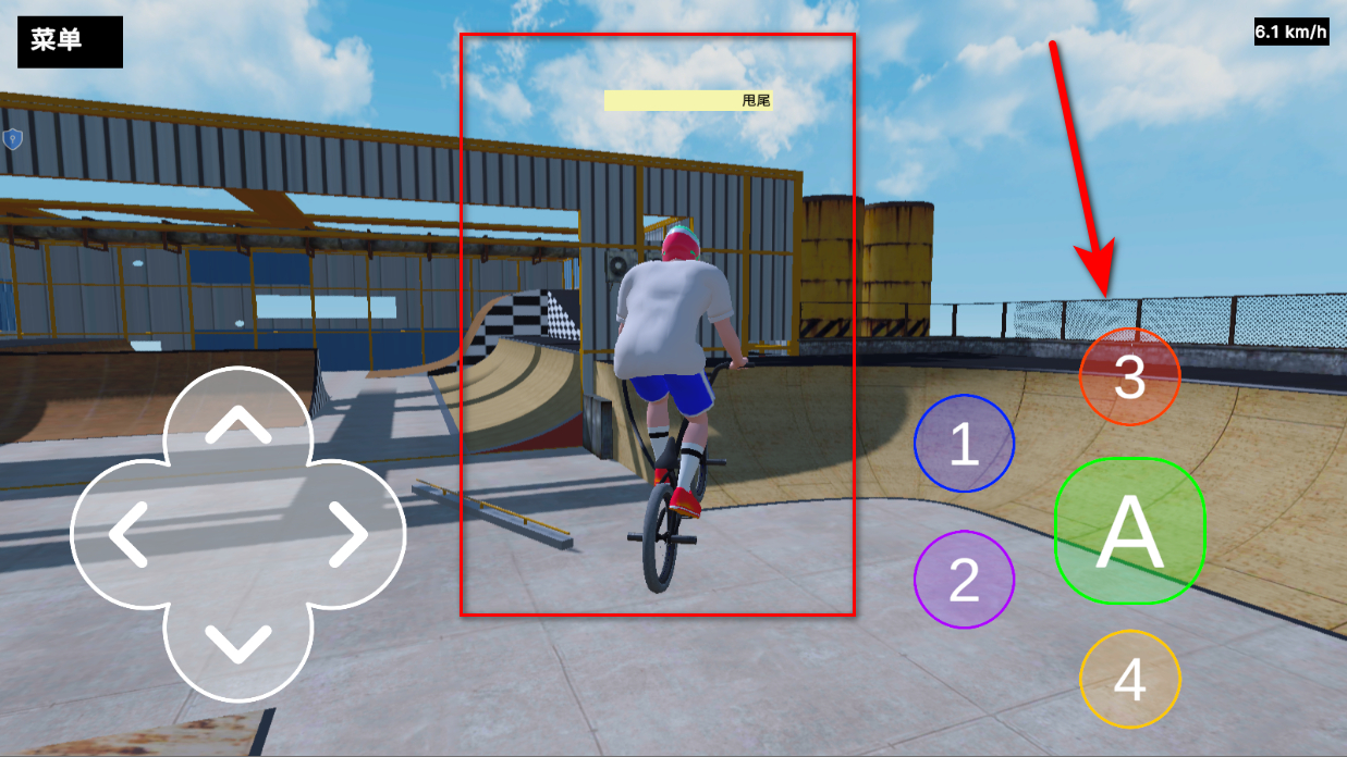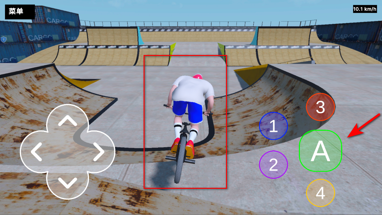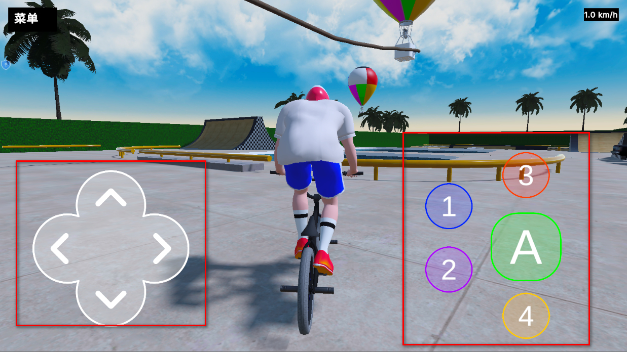2、在游戲中通過左側方向鍵控制小輪車的移動方向,右側的數字和字母按鈕可觸發不同的動作,操控小輪車在場景中行進。