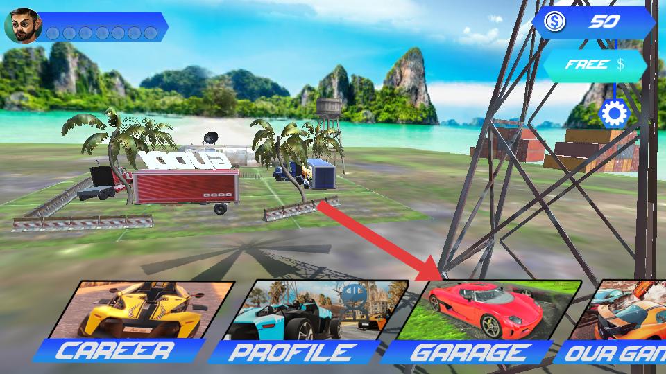 2、接著進入主界面,點擊garage,進入車庫,可查看不同的賽車,挑選喜歡的賽車,準備參與對決。