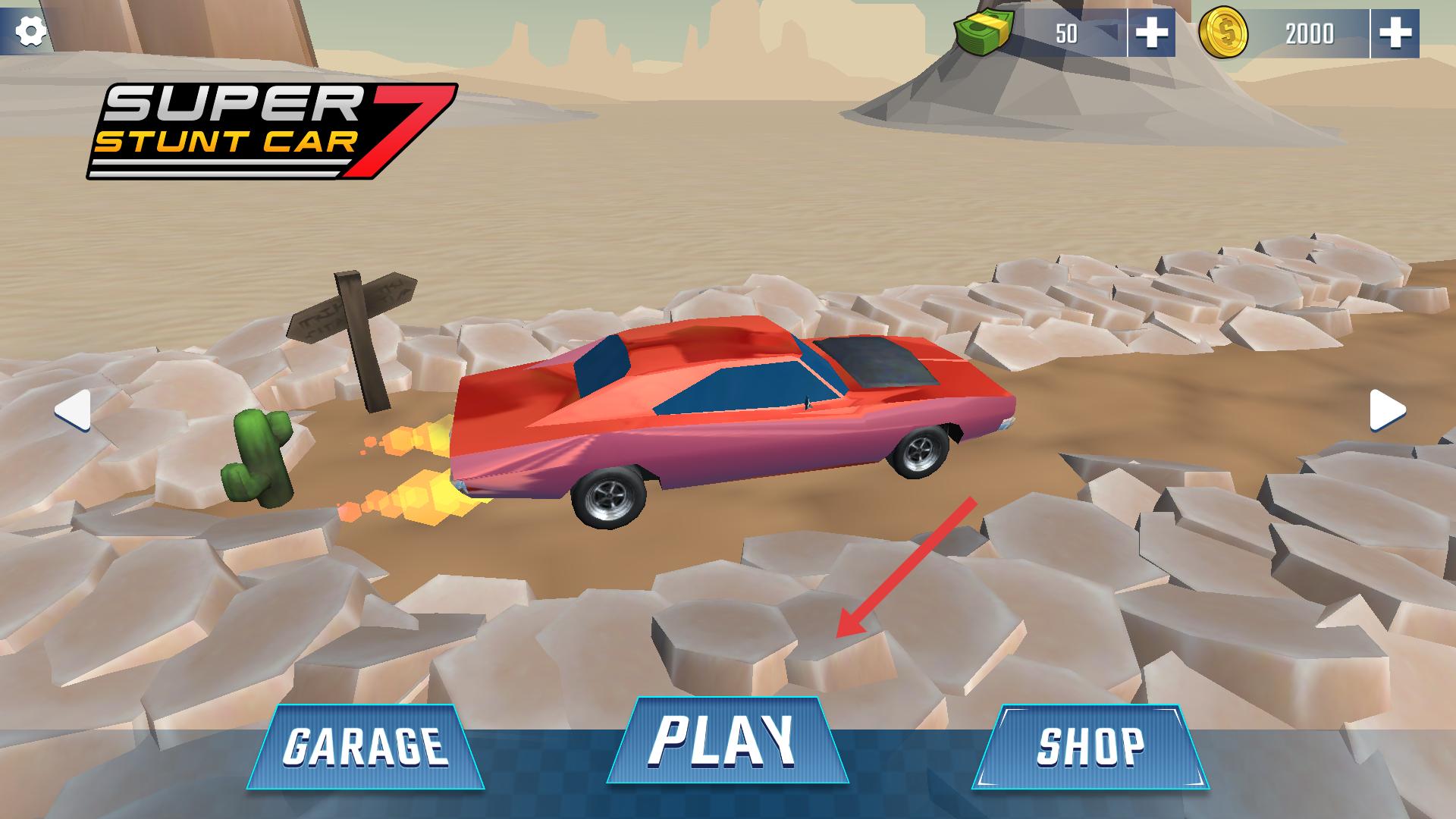 1、在主界面找到標有開始的按鈕,點擊該按鈕,即可進入賽車特技關卡,開啟駕駛挑戰。