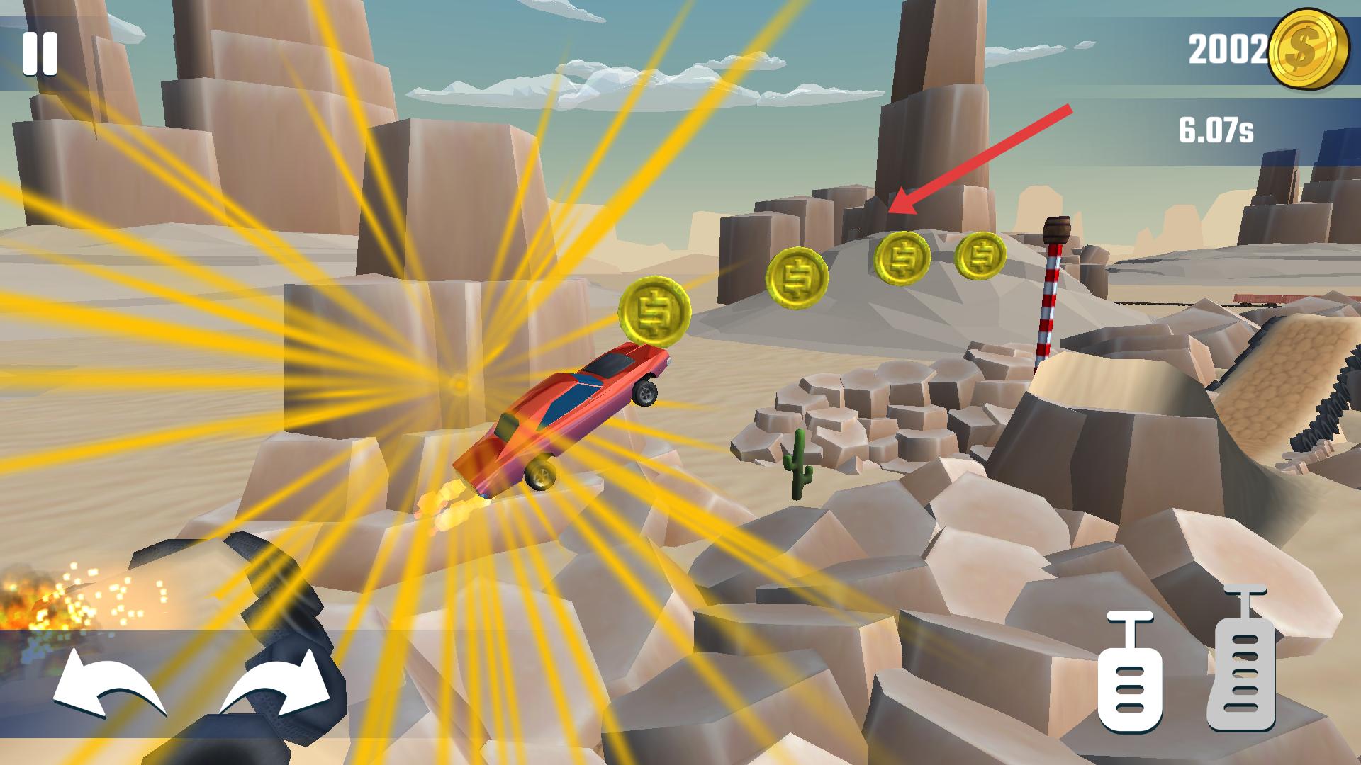 3、留意空中懸浮的金幣,操控賽車盡可能去收集這些金幣,同時還要應對賽道上的各種障礙和地形。