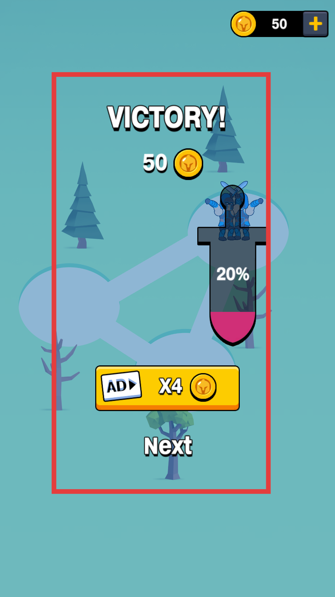 4、藍色戰士擊敗紅色惡魔后,游戲界面切換到勝利界面,界面顯示VICTORY字樣,提示獲得金幣,還有Next按鈕,點擊Next按鈕,可進入下一個游戲關卡。