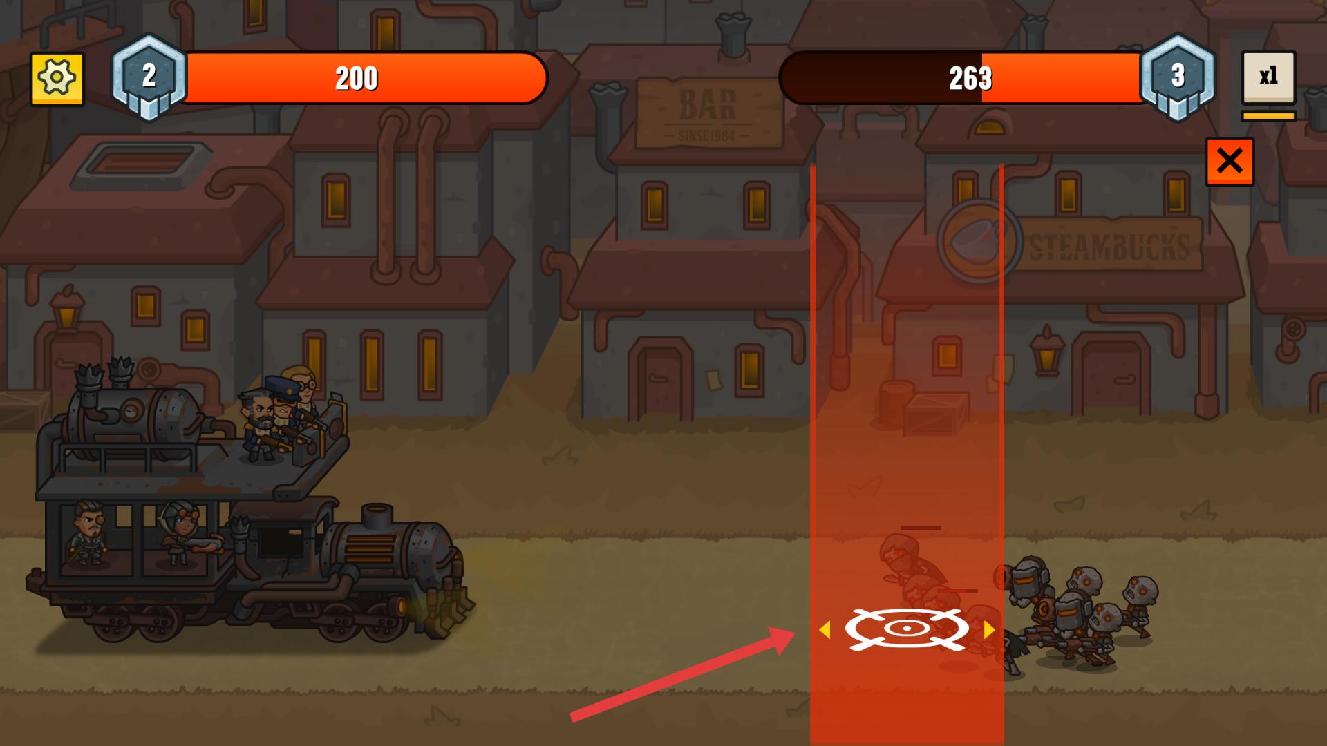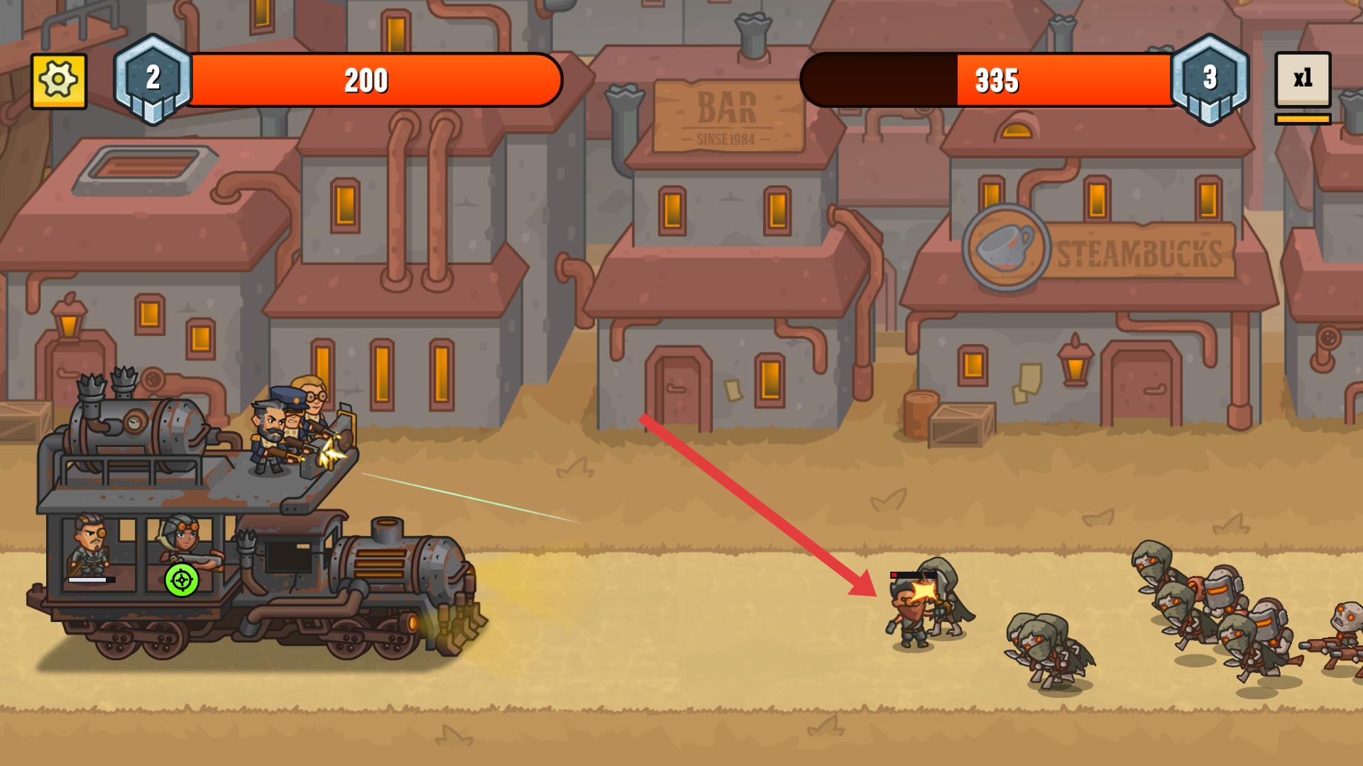 2、進入戰斗后,火車上的角色會自動射擊前來的敵人,上方會顯示雙方的進度條,可觀察戰斗進程。