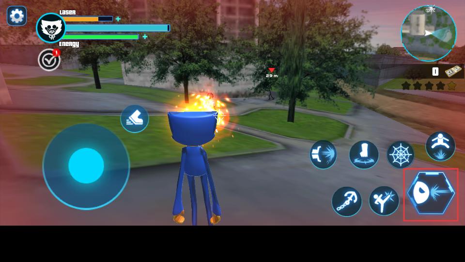 3、操控藍色角色在城市中移動,遇到敵人時,點擊右側攻擊按鈕,釋放技能,與敵人展開戰斗。