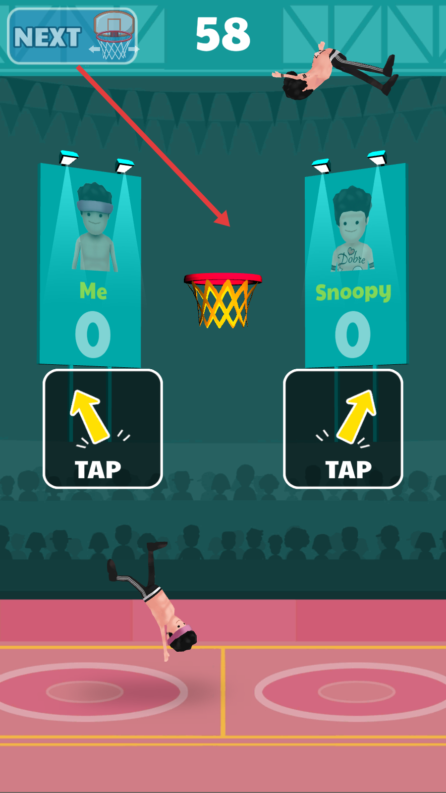 3、玩家游戲過程中需要通過點擊屏幕等操作方式,控制角色進行投籃動作,將人物進入籃筐。