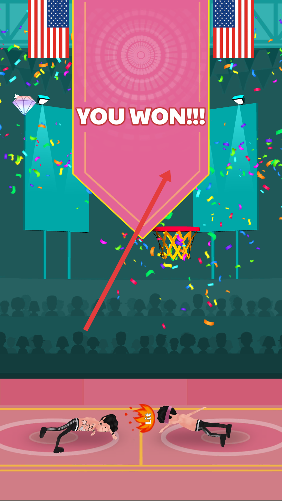 4、持續進行投籃,積累更多得分,當得分領先并成功戰勝對手后,游戲會顯示YOU WON宣告勝利。