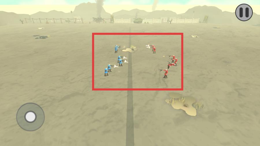 4、部署完成后,點擊界面右下角的GO按鈕,開始戰斗,我方部署的兵種與敵方紅色兵種在戰場上相遇,雙方自動展開射擊對戰。