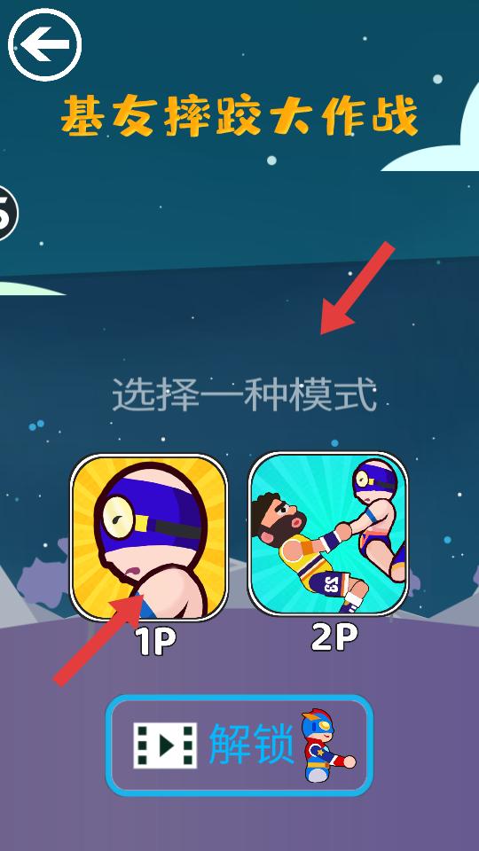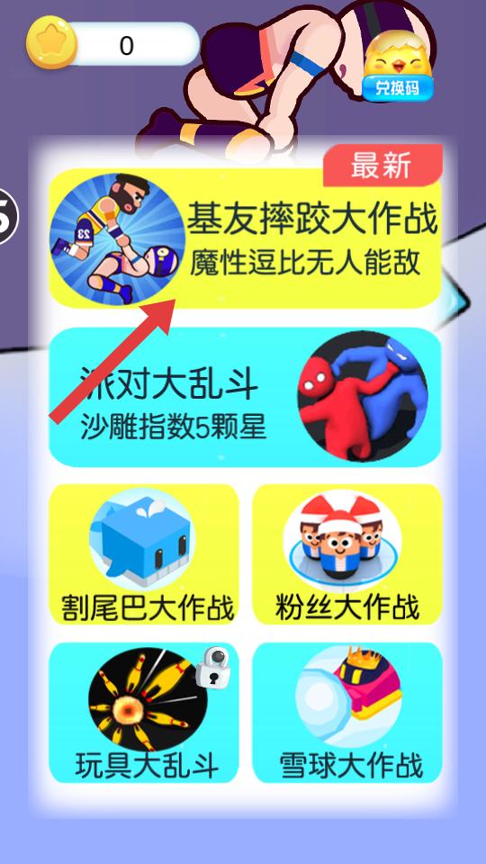 1、進入游戲,在游戲選擇界面,有基友摔跤大作戰等多個游戲,選擇基友摔跤大作戰,進入該游戲的模式選擇界面。