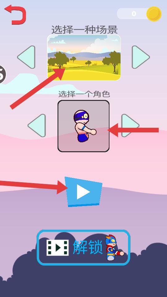 3、在場景和角色選擇界面,選擇喜歡的場景和角色,選好后點擊開始按鈕,進入游戲的摔跤對戰場景。