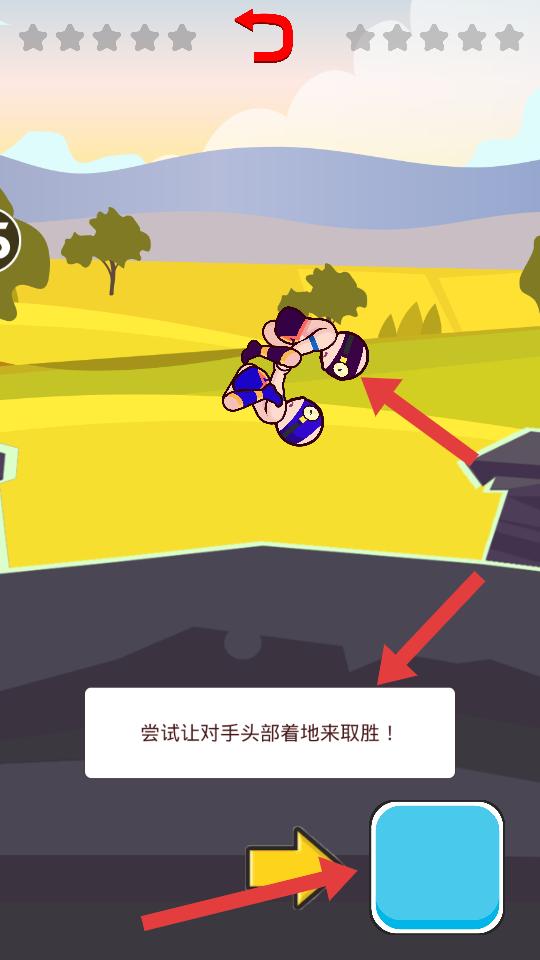 4、進入對戰場景后,操控角色與對手摔跤,嘗試讓對手頭部著地來取勝,通過操作贏得比賽,獲得游戲勝利。