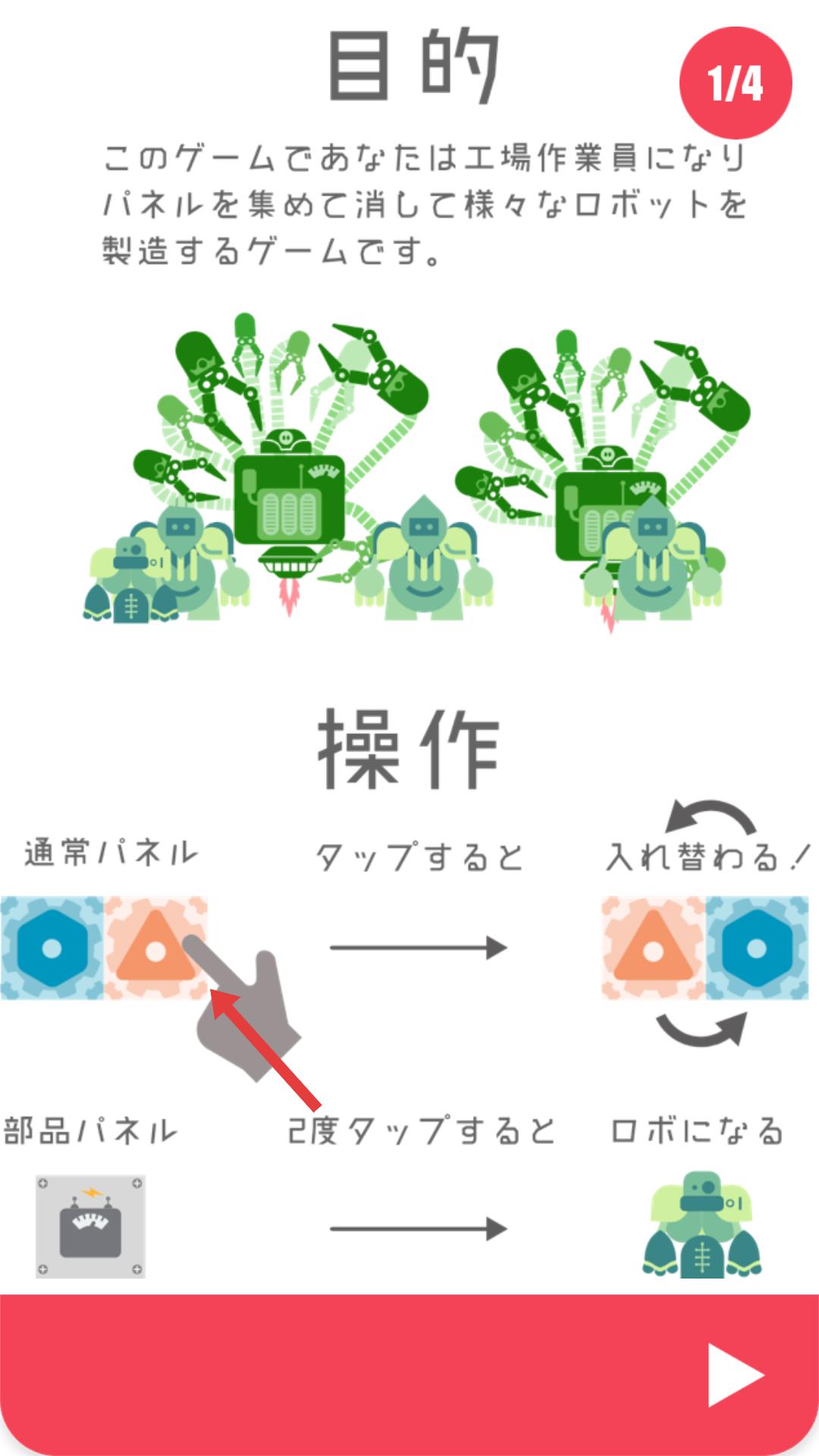 1、游戲中你將成為工廠作業員,目標是收集、消除面板來制造各類機器人,操作點擊可交換普通面板位置,點擊兩次部件面板能將其變成機器人。