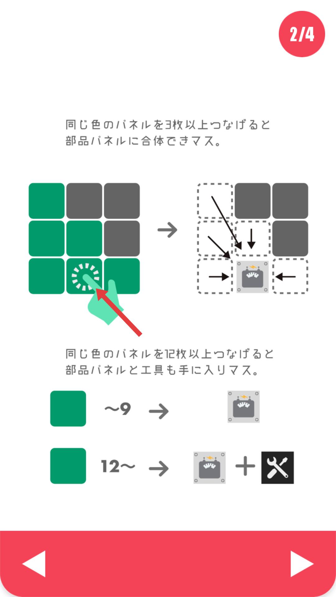 2、當有3枚以上同色面板相連時,可合成部件面板,若同色面板達到12枚及以上,除了部件面板,還能獲得工具,助力后續操作。
