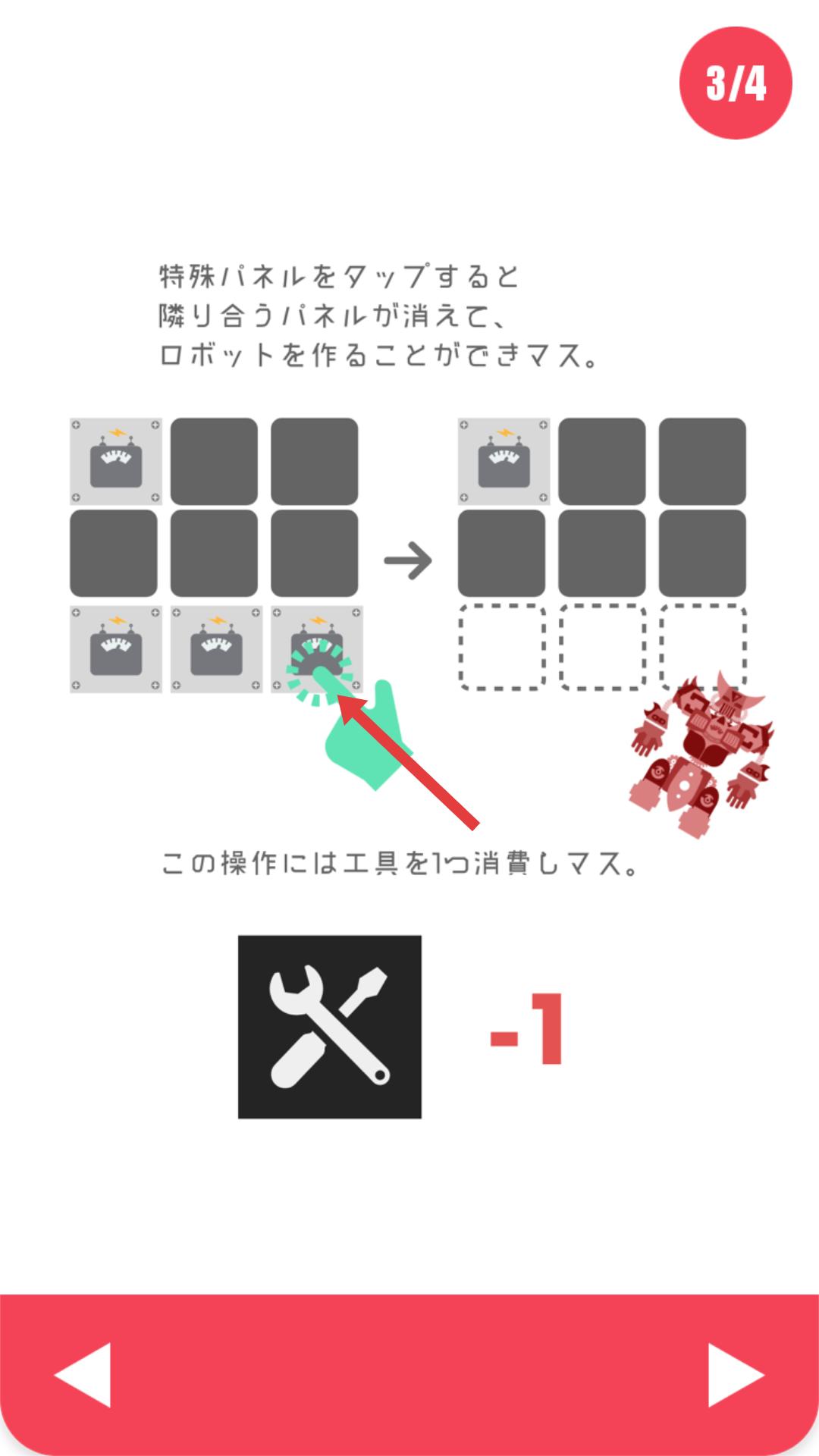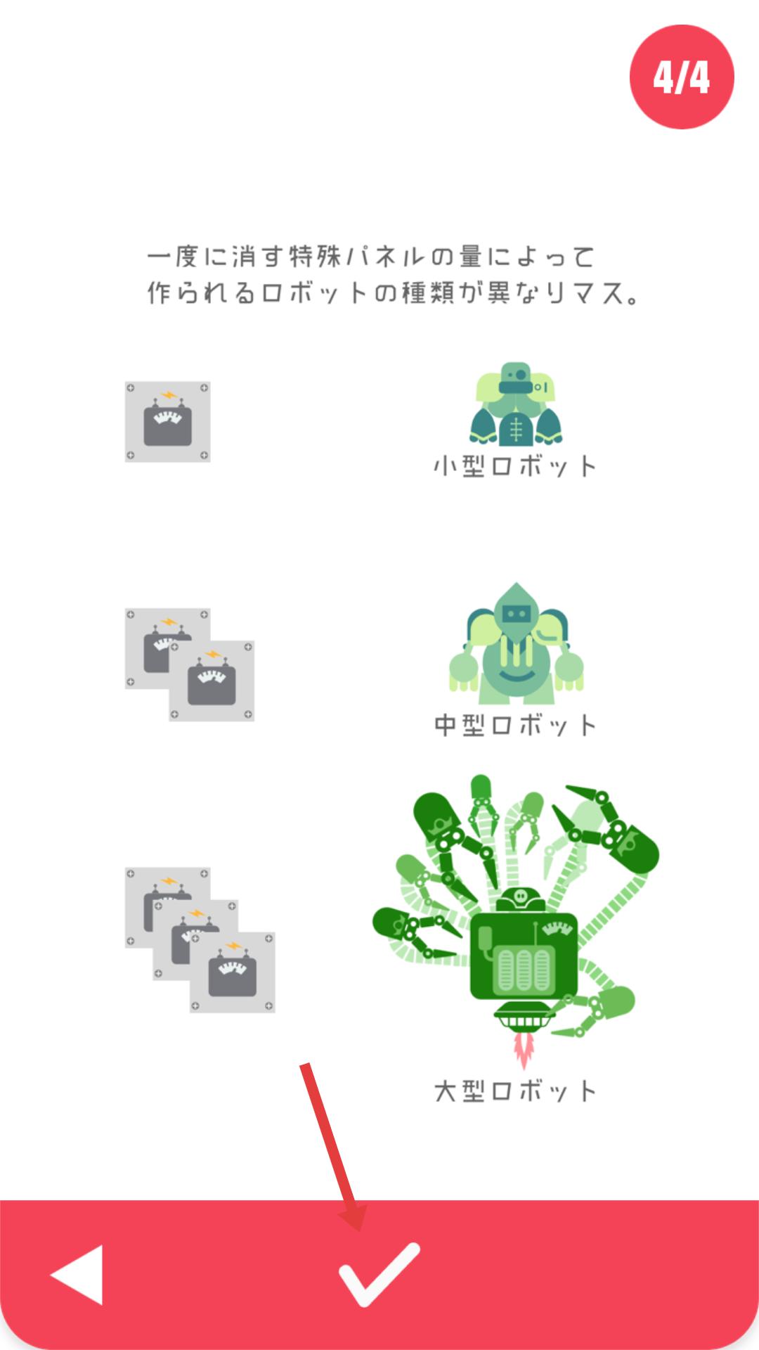 4、制造的機器人種類由一次消除的特殊面板數量決定,消除1個特殊面板造小型機器人,消除2個造中型機器人,消除3個及以上造大型機器人。