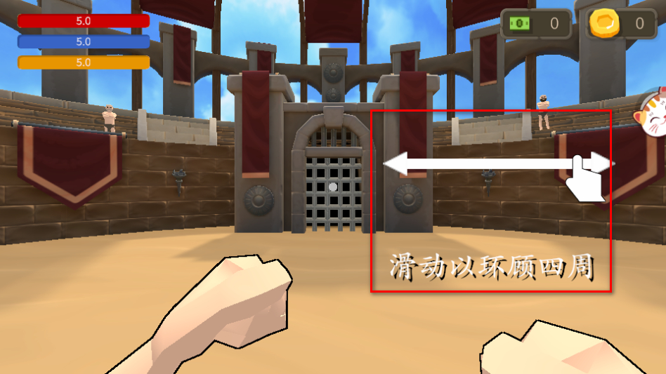 1、進入游戲場景后,通過滑動屏幕來環顧四周,觀察場地環境和潛在對手的位置,提前熟悉戰斗區域的布局。