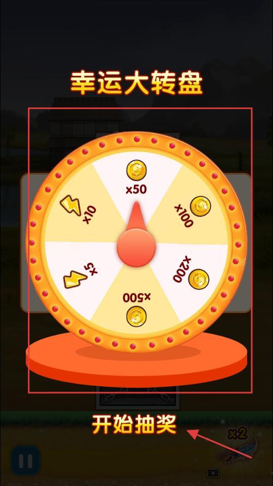 4、游戲的幸運大轉盤界面,可以抽取金幣、閃電等獎勵,有開始抽獎按鈕,轉盤的設計色彩鮮艷,充滿了趣味性。
