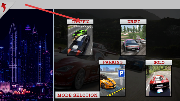 2、玩家可選擇如RAFFIC交通模式、DRIFT漂移模式等不同游戲模式,玩家選擇自己喜歡的模式然后開始游戲。
