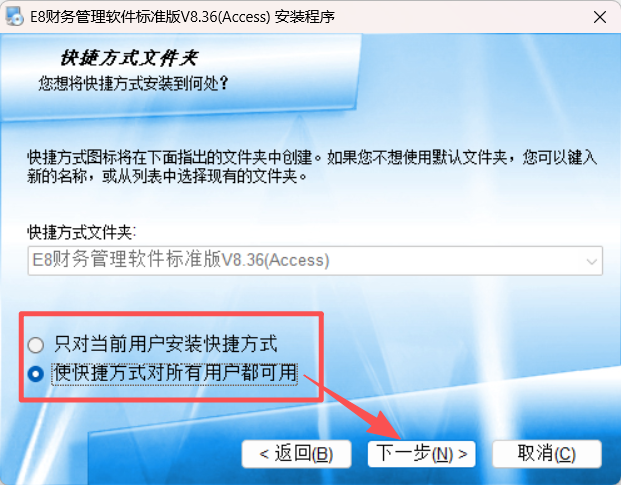 5、最后根據需求,選擇支隊當前用戶安裝快捷方式或者是便快捷方式對所有用戶都可用,點擊下一步之后即可完成安裝。
