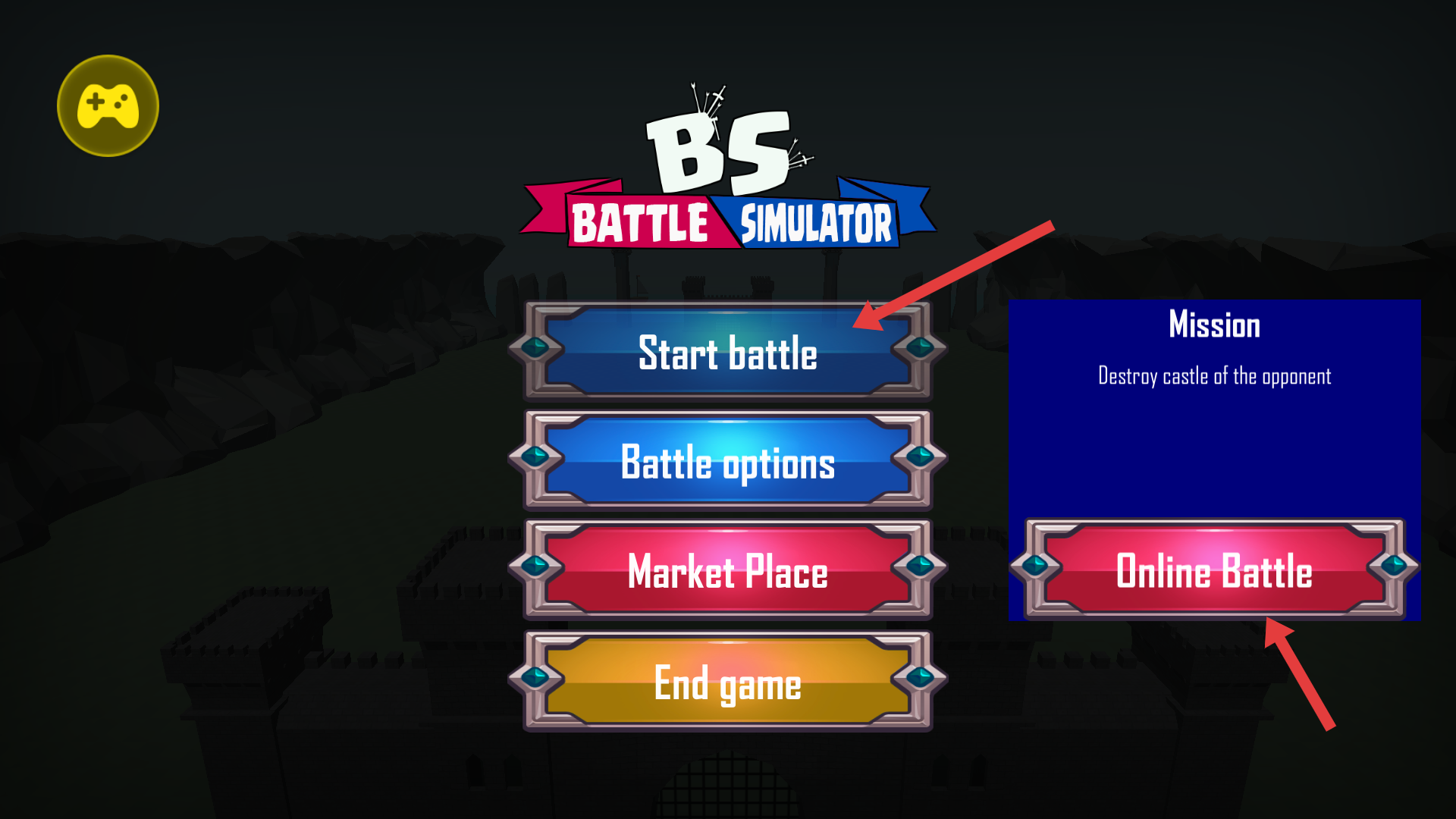 1、玩家進入游戲后,可選擇Start battle開始戰斗,接著選Online Battle進行在線對戰,目標是摧毀對手的城堡。