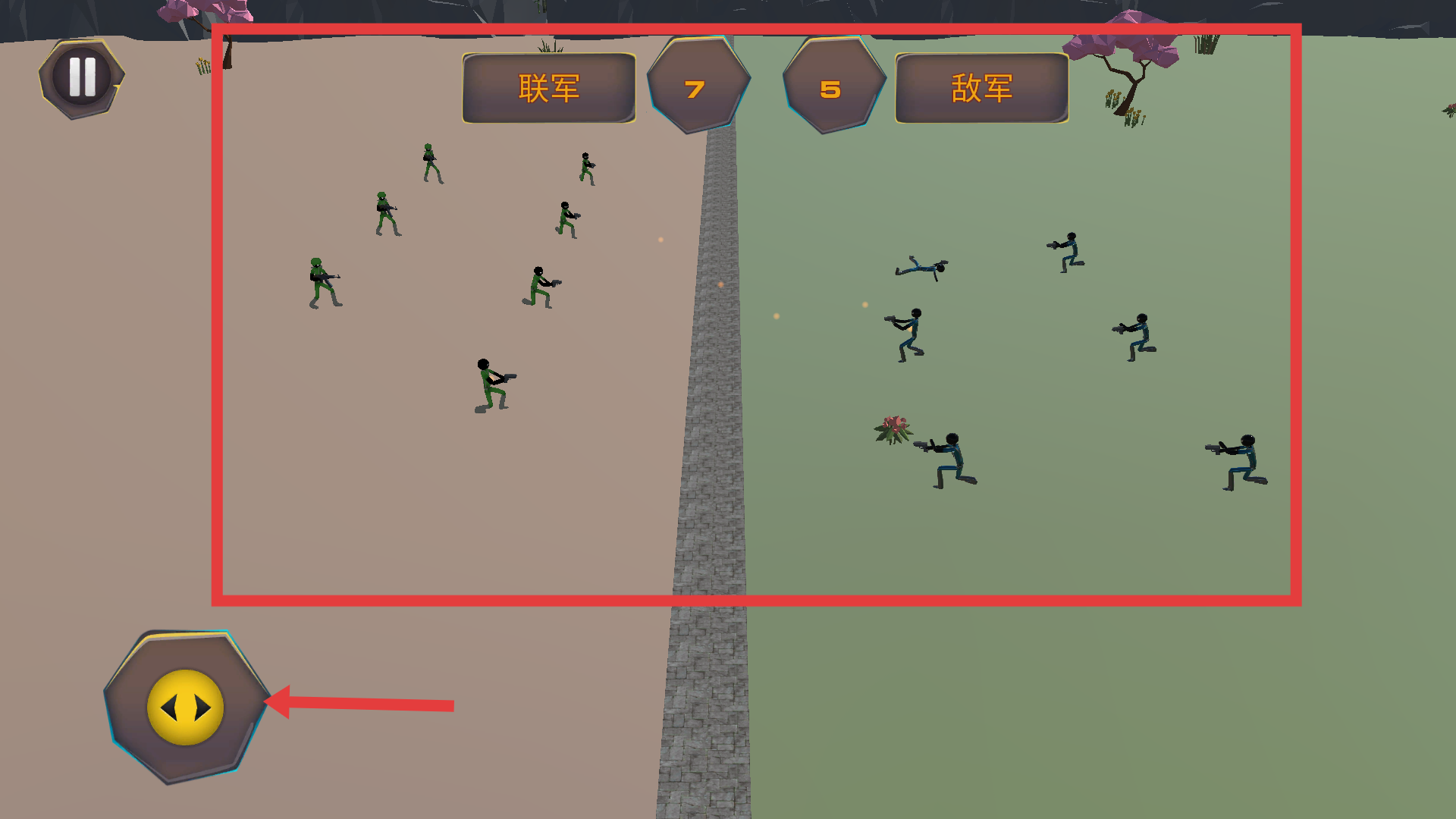 3、戰斗時可通過左下角按鈕調整玩家的視角,密切關注聯軍與敵軍對抗,盡可能消滅更多敵軍減少我方戰損。