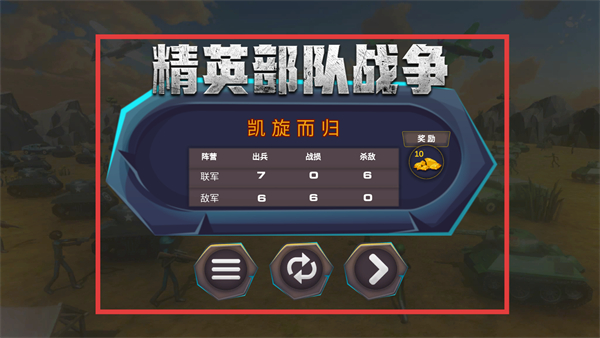 4、成功擊敗敵軍后,會顯示凱旋而歸,還能獲得金幣獎勵,可用于后續升級兵種或解鎖新的史詩兵種。