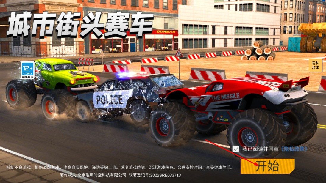 1、進入游戲界面,勾選我已閱讀并同意《隱私政策》后,點擊開始,即可開啟城市街頭賽車之旅。