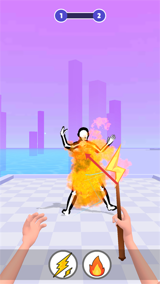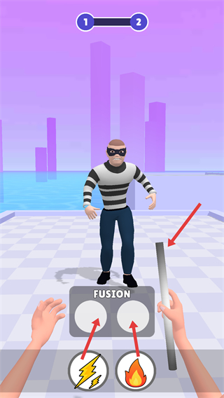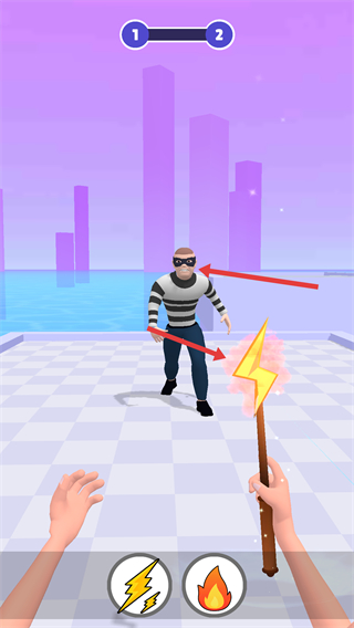 1、面對戴面罩的角色,可選擇閃電、火焰等能力,將其融合到道具中,準備施展魔法。
