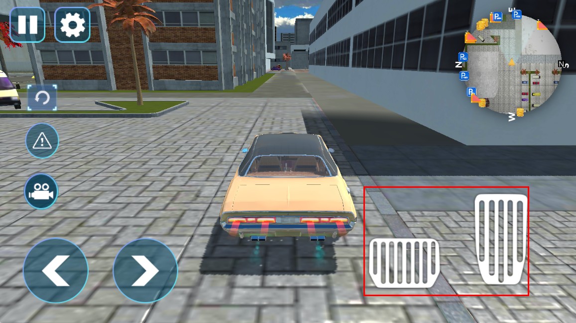 3、在城市道路行駛時,點擊右側油門和剎車踏板,可控制賽車的加速與減速,靈活應對不同路況,推進任務進程。