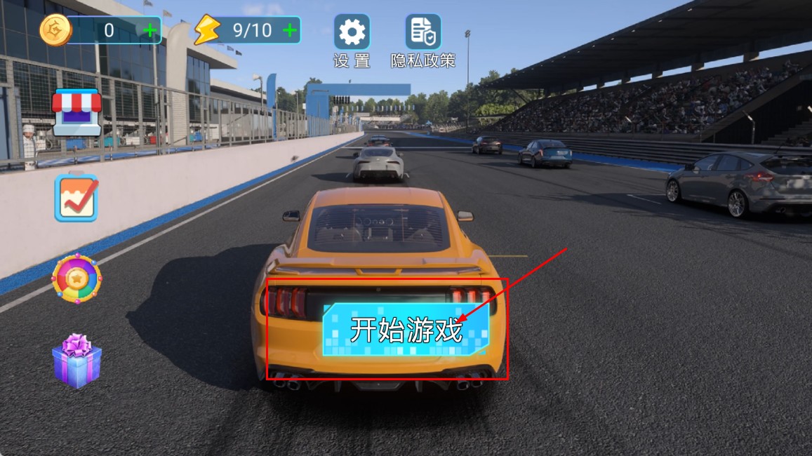 1、進入游戲會看到賽道場景和跑車,點擊開始游戲按鈕,即可進入任務選擇環節,準備開啟賽車挑戰。
