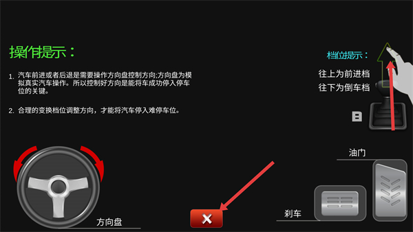 3、查看操作提示,汽車前進或后退都要操控方向盤控制方向,還得合理變換檔位調整方向,為停車做準備。