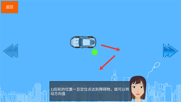 1、了解汽車后輪定位相關知識,后輪位置的定位點碰到障礙物時,就可以轉動方向盤來調整方向。