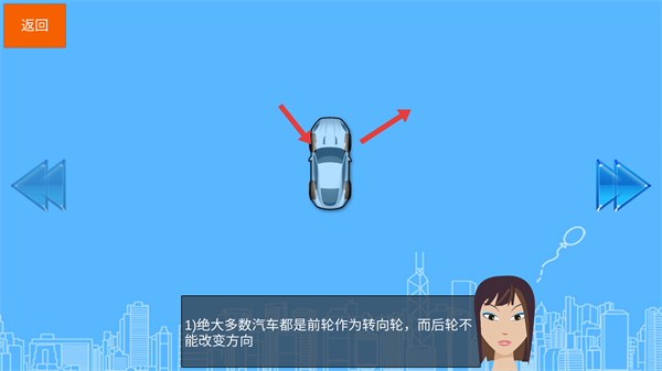 2、要知道絕大多數汽車前輪是轉向輪,后輪不能改變方向,依據這個特點,操控汽車移動和轉向。