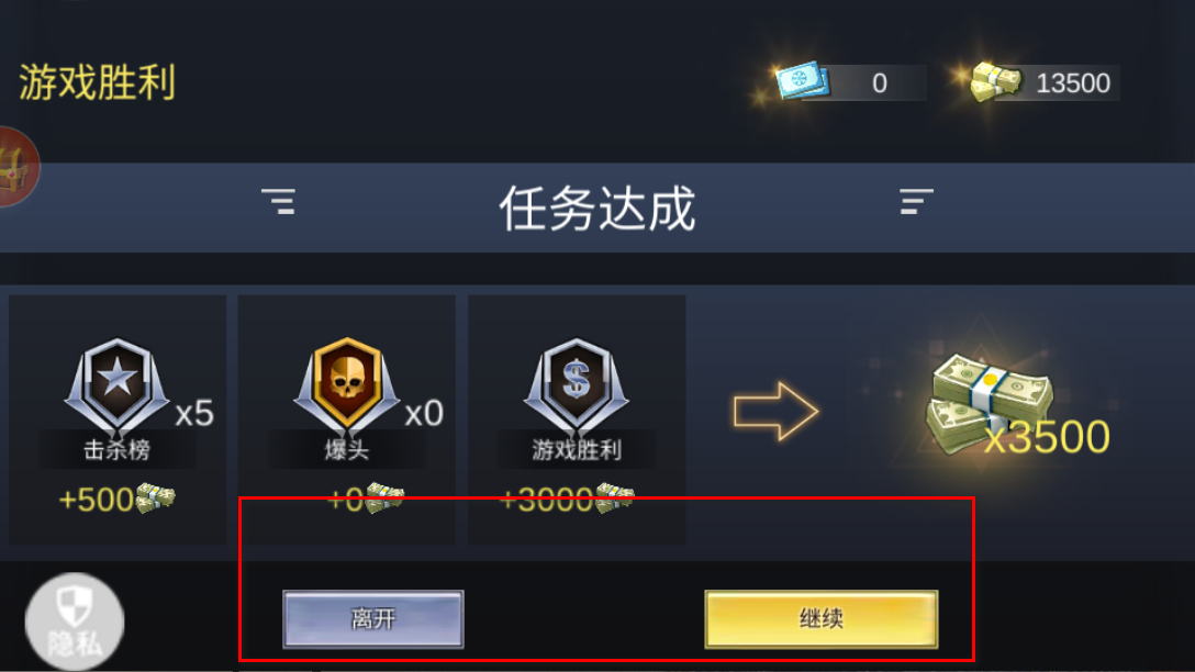 4、成功完成任務后,會顯示游戲勝利界面,此時可以選擇離開結束游戲,或者點擊繼續開啟新的戰斗挑戰。