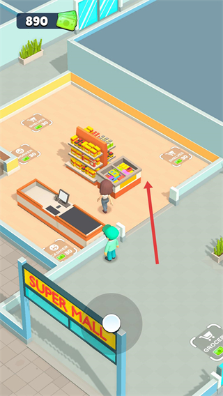 1、操控角色在超市內移動,可收集地面上的鈔票,積累初始資金,為超市經營做準備。