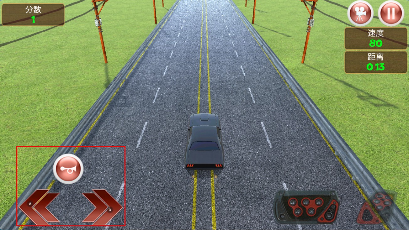 4、在駕駛過程,可使用左側箭頭按鈕控制汽車轉向,點擊喇叭按鈕還能發出鳴笛,增加駕駛的互動性。