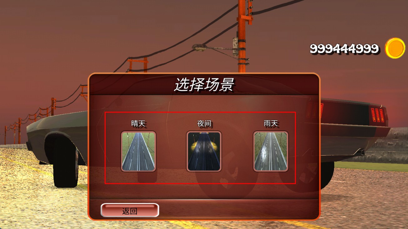 2、點擊開始后會出現選擇場景界面,有晴天、夜間、雨天三種場景可選,挑選喜歡的場景進入駕駛環節。