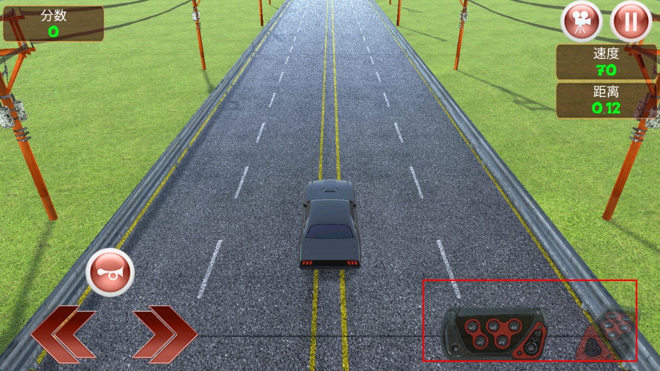 3、進入駕駛場景后,可通過右側操作區域控制汽車行駛,同時關注速度和距離等數據,感受真實駕駛體驗。