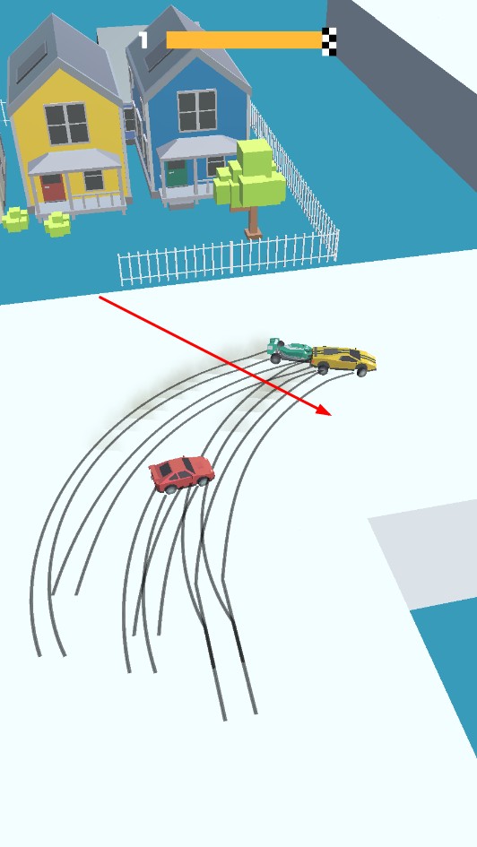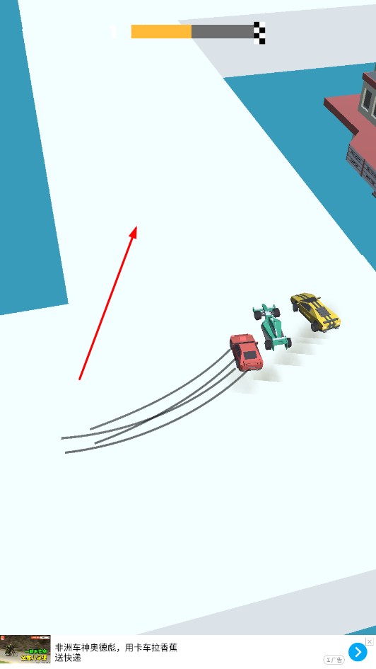 2、點擊右邊屏幕,比賽中操控賽車于道路上漂移行駛,超越其他賽車,同時注意路線,爭取保持領先位置。