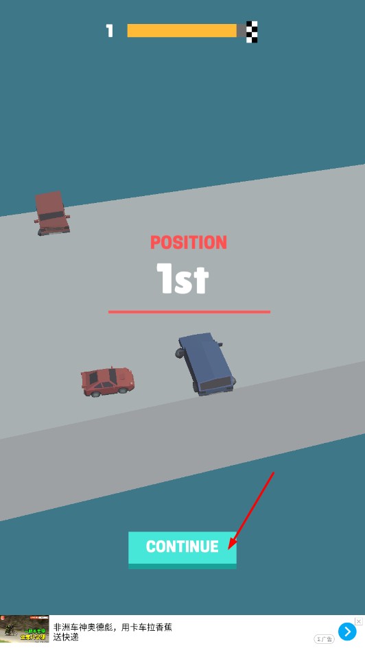 4、成功獲得第一名后,界面會顯示POSITION1st,點擊CONTINUE按鈕,可繼續下一場競速挑戰。