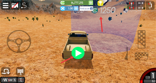 3、駕駛時用左側方向盤控制方向,右側踏板控制油門和剎車,在沙漠地形中行駛,留意周圍環境,完成越野任務。