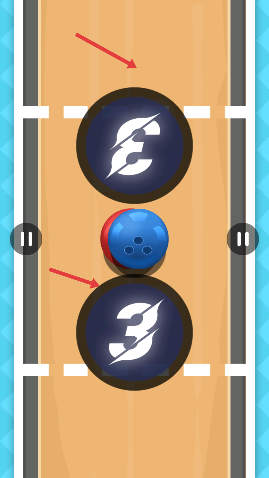 3、進入保齡球對戰場景后,會看到保齡球和兩側的操作區域,通過操作讓保齡球滾動,撞擊目標,以此來獲取分數或達成游戲目標。