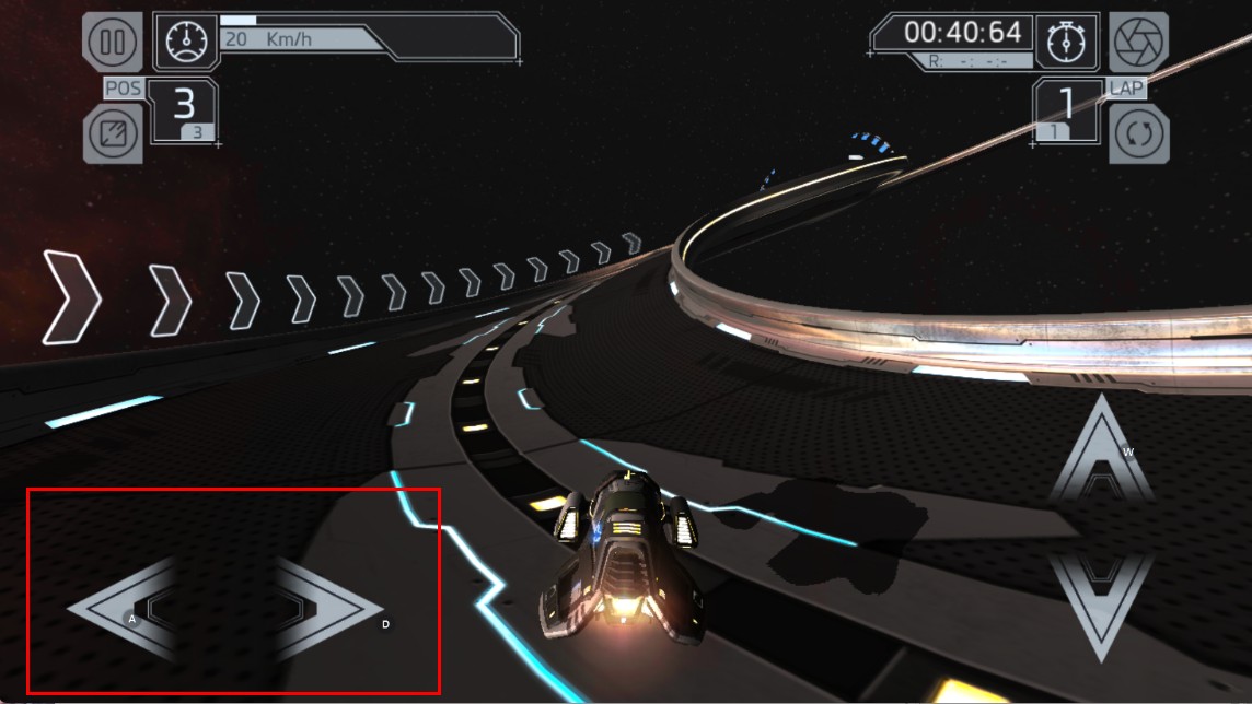 3、遇到彎道時,點擊左側的左右箭頭按鈕,能操控飛船轉向,靈活調整方向,順利通過彎道,保持競速節奏。