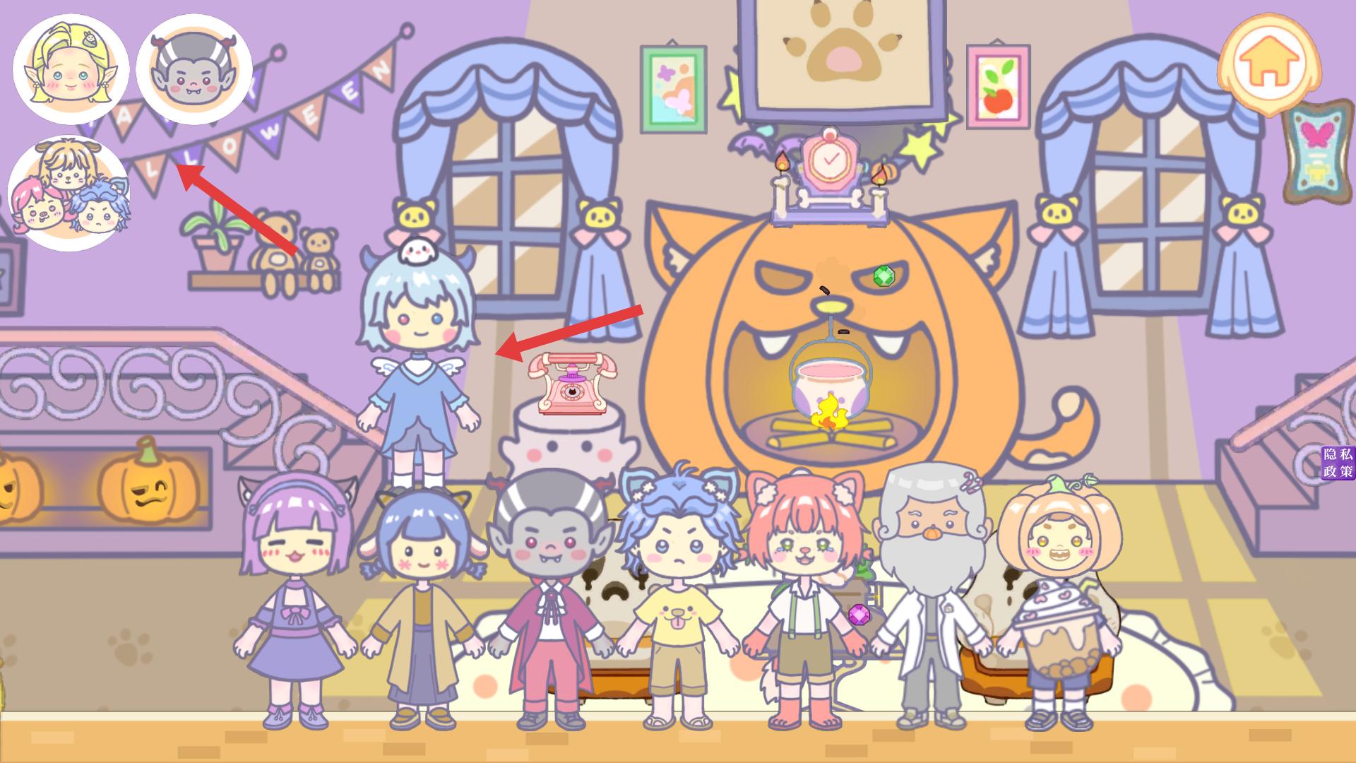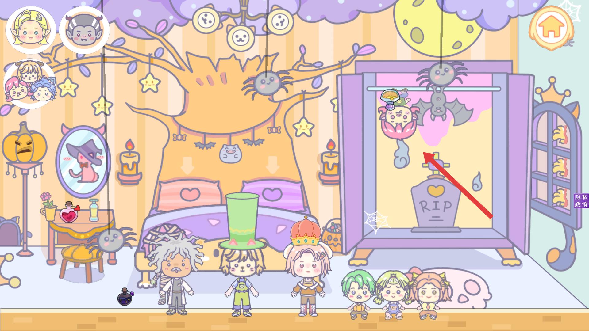 3、查看房間里的各種裝飾,如南瓜、蜘蛛等萬圣節元素,還有衣柜、鏡子等家具,探索這些裝飾和家具可能帶來的互動或隱藏內容。